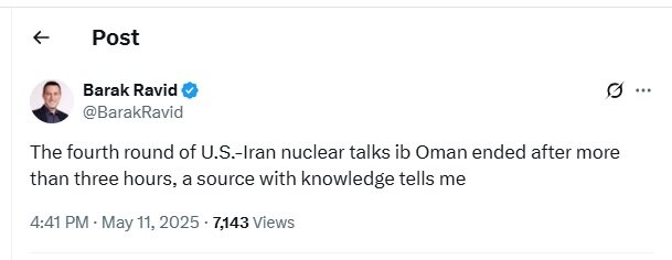 بر اساس اعلام این رسانه، این دور از رایزنیهای غیرمستقیم میان نمایندگان دو کشور پس از بیش از ۳ ساعت به پایان رسید.